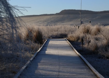 Macraes Flat holds wetlands that make up the headwaters of the North branch of the Waikouaiti River. These wetlands provide important feeding and breeding habitiat for a range of insects and birds. This 13 hectare area has been protected and developed by GRD Macraes LTD as part of the Macraes Wetland Heritage Walkway and is part of the Macraes Heritage and Art Park. Take the time to follow the track and boardwalk and learn about the plants, insect, birds and history that make this wetland special.