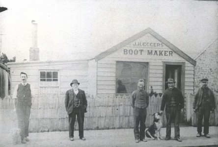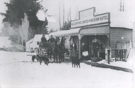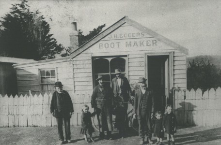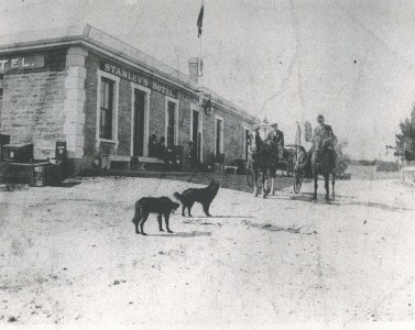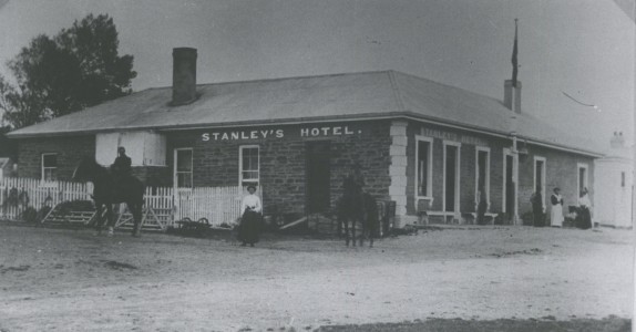 John MacRae, from whom the township of Macraes and Macraes Flat take their names, was a boundary rider.  With his wife and young family, he had a swelling about a mile on the Dunback side of the township.  Birth records show that some of his family were born there, and his descendants make reference to “Bonnie Brook” being MacRaes own name for the place. After the first discovery of gold in the Highlay Hills area in 1863, gold rushes followed and Macraes township formed.  An article dated the 8th May 1865 in the Otago Witness reported that there were 25 businesses in place in the township to support the 500 miners working in the area.  These businesses consisted of hotels, food and supply stores, bootmakers. Some of the buildings were built of wood, but many were made of sods and clay with thatched roofs.  Peat that was cut in the summer and dried was used as a fuel source over winter.  The town was first surveyed as Town of Macraes in 1876. During the heydays of the gold rush era there was both an upper and lower township, although the upper township was never surveyed as such. Most of the Chinese miners resided in the upper township which was about a kilometre from the lower township in the vicinity of Golden Point and Gifford Roads. There were stores in the upper township and probably grog shanties rather than licensed hotels. The home of Louis Gay Tan that has remained intact would have been in the upper township.  Louis Gay Tan was a prominent Chinese merchant and interpreter who arrived in NZ in 1867 Known as ’The Chinese Palace,’   Chinese motifs are still to be seen on the lintels at its front door. This is a much more substantial dwelling than was usual for Chinese citizens but Louis’s wife, Emily, who grew up in Naseby, was of European descent and she would certainly have had some influence in the standard of housing she was willing to live in. One of the businessmen and wagoners, Thomas Stanley, bought Stanleys Hotel in 1882 and proceeded to have it rebuilt  by built by stonemason John Budge, with the resulting buildings still what stands on the corner of Macraes and Hyde Roads overseen by the New Zealand Historic Places Trust.