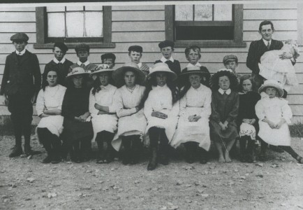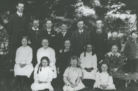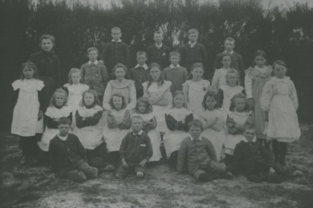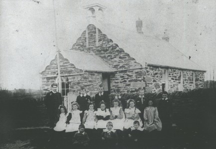 In the early days the area was serviced by two schools, Macraes which was established in 1868 and Moonlight School which was opened circa 1880.  The Moonlight School was built on a site near the centre of Moonlight Flat, and remnants of the school remain at its original site on the corner of Moonlight and School Rd.  The school roll for Moonlight peaked in 1896 with 45 pupils attending the school which came from the Moonlight, Nethorn and Horse Flat areas.   The physical Moonlight school closed in 1952 at which time it was merged with Macraes school to form Macraes-Moonlight school.  The Moonlight school teacher had additional duties as the post-office was also housed within the school. The first school in Macraes was the result of discussions held in February 1868 about the need for a school to be established.  A small wooden two room building was purchased and a teacher, John Knox, was appointed. Within a short period this building was found to be unsuitable, and fund raising commenced to allow for the construction of a new, stone building on small hill overlooking the township which was formally opened in 1874 . This building was to serve as the Macraes School until it was closed in 1959.  In 1959 the new school was opened on its current site.  A replica of the old stone school  was built by a former school principal Mr P. Paulin for the school centenary in 1968.  The school bell that was installed in 1870 takes pride of place in the centre of the school and is still used to call the children in to class. In 2018 Macraes-Moonlight school celebrated 150 years of educating generations of children from Macraes and the surrounding areas.